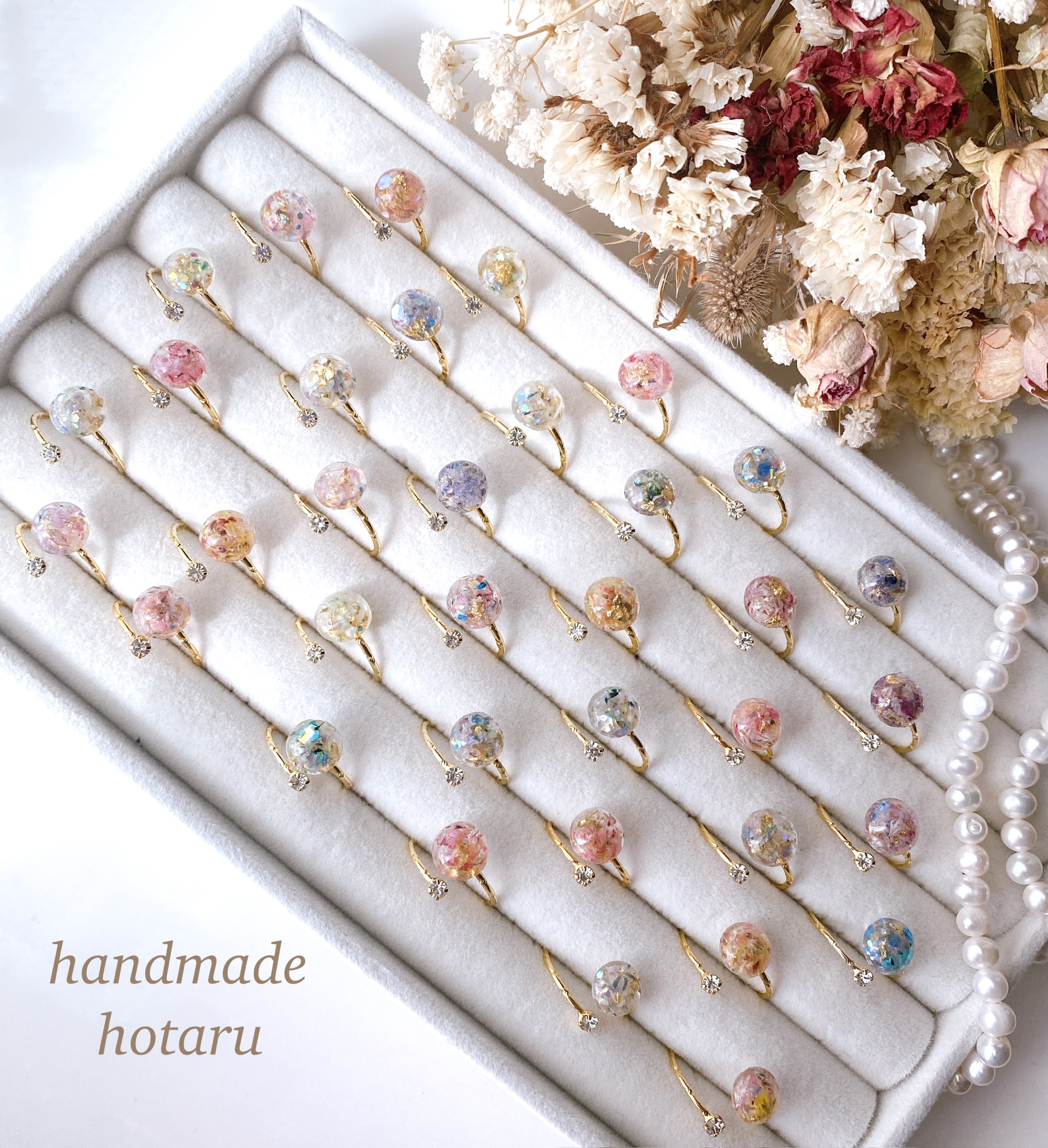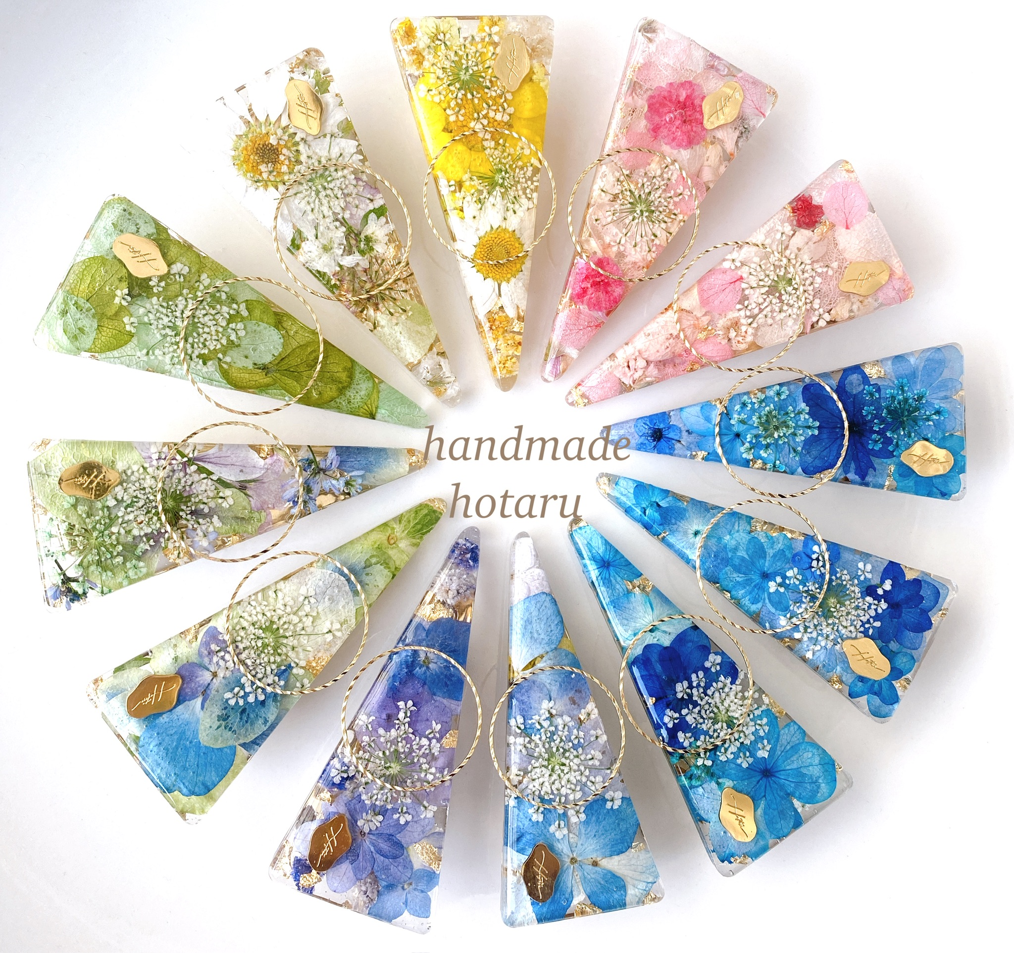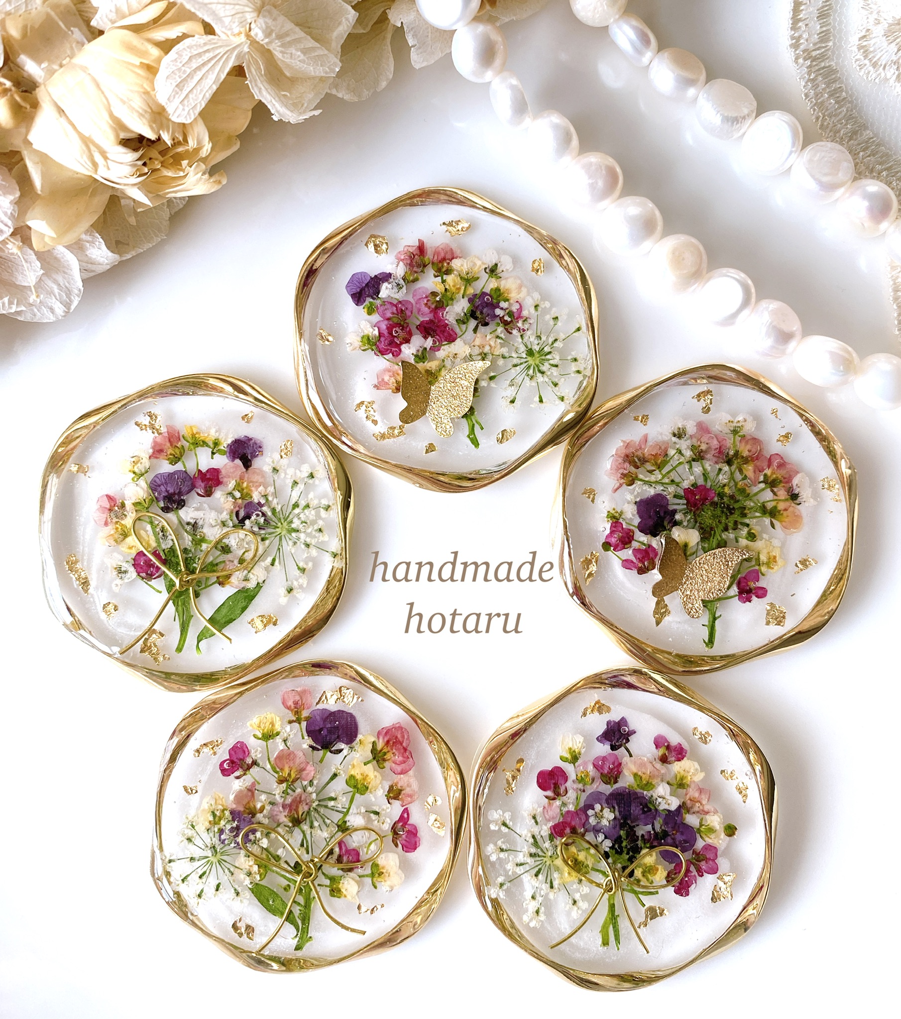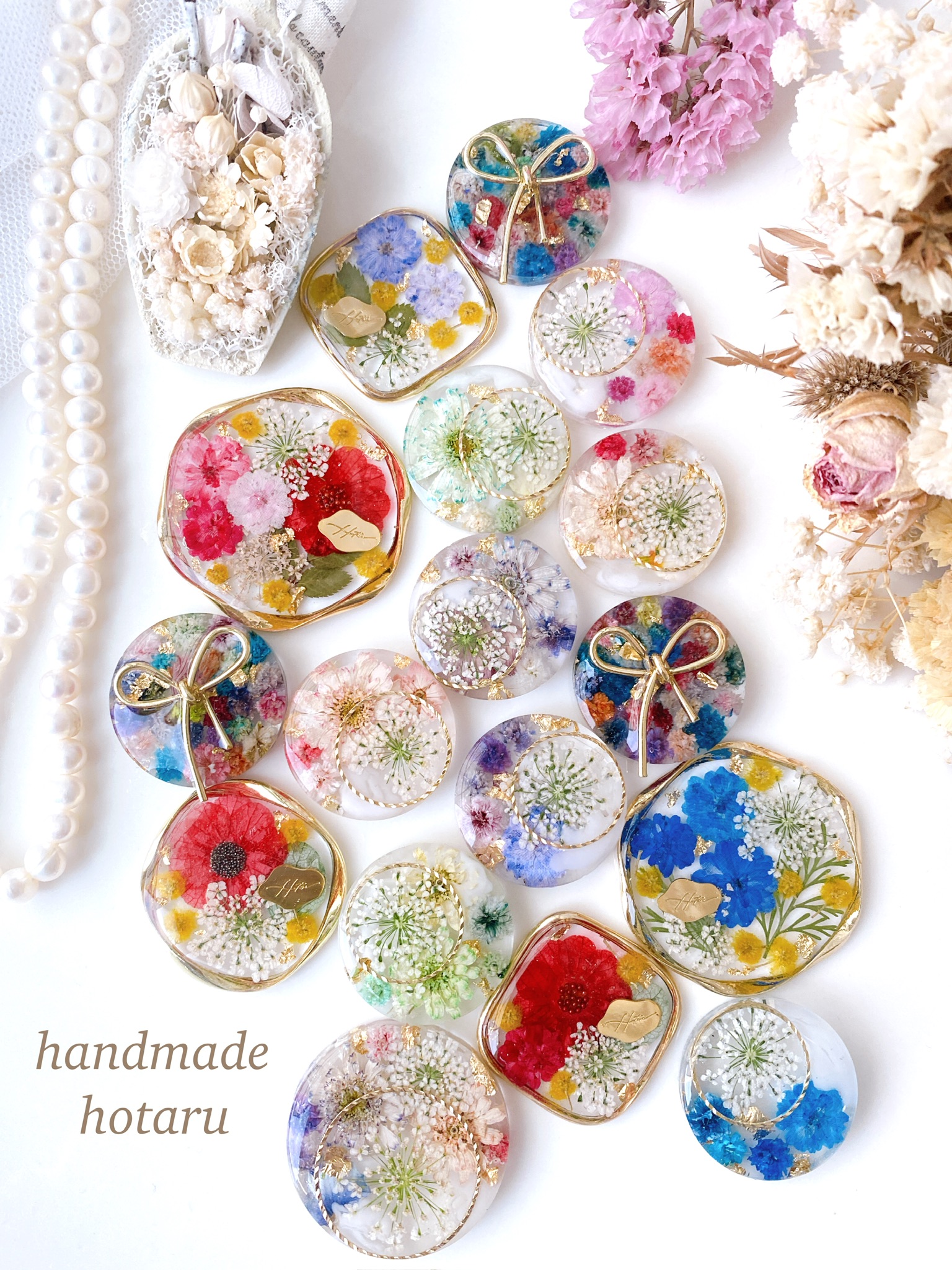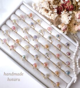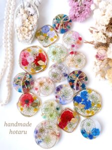 handmadeでドライフラワー、押し花、フルーツを使ってレジンアクセサリーを作っています。