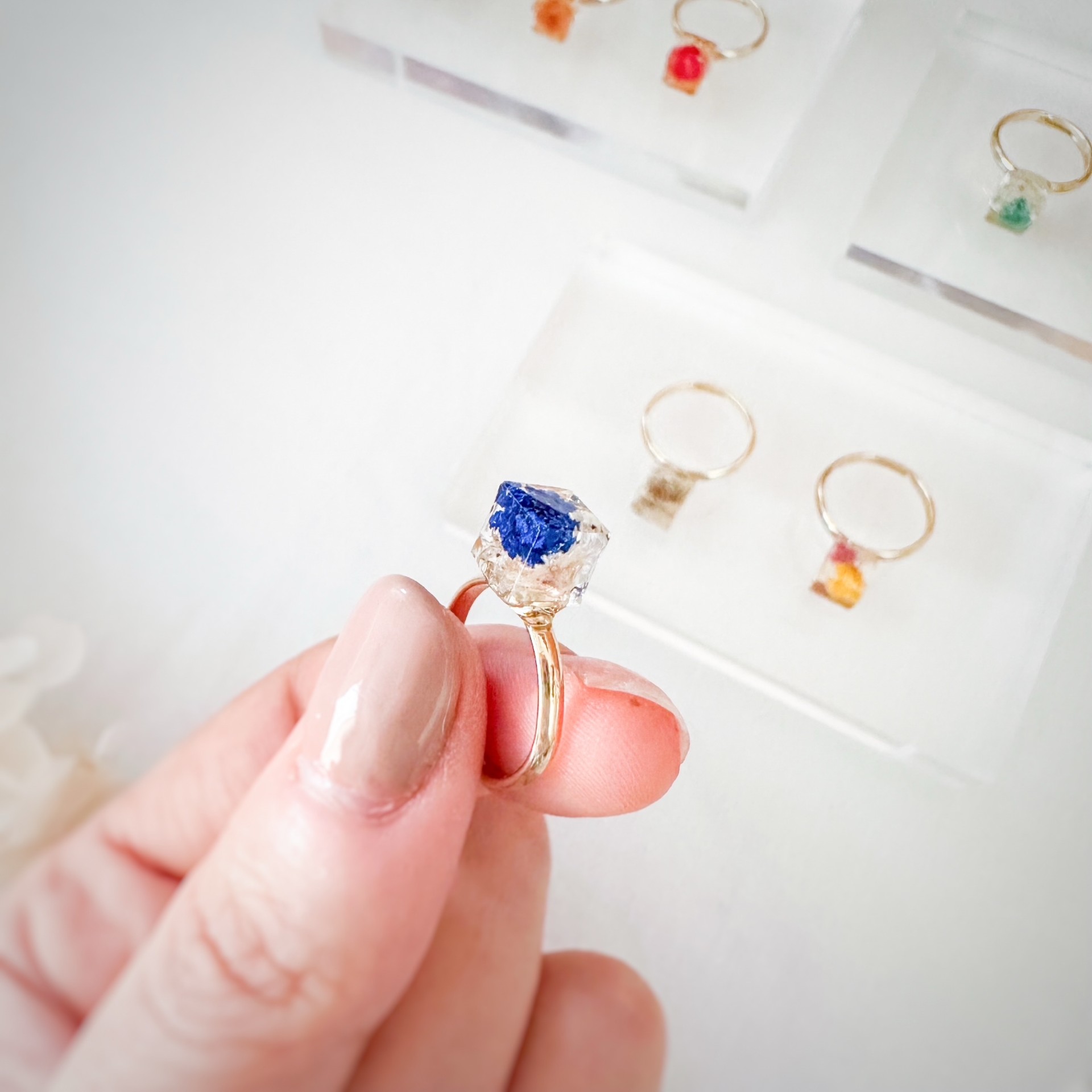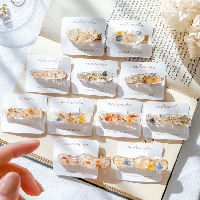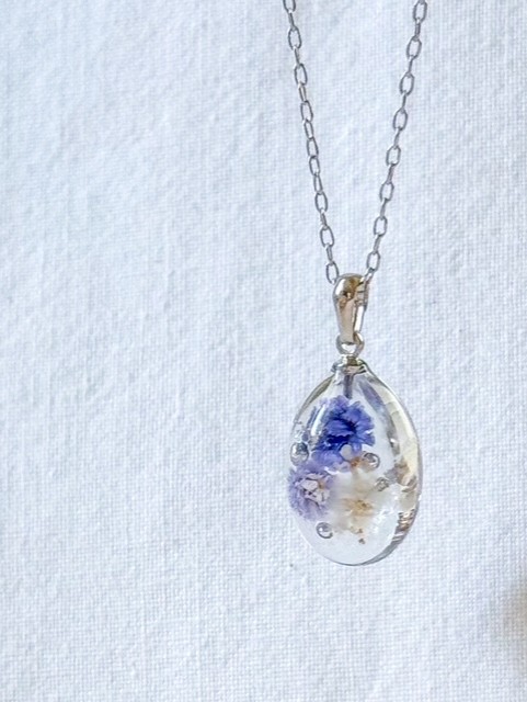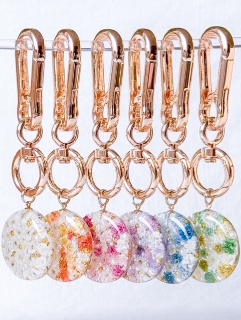 ドライフラワーとパールを使用したレジンアクセサリーを製作しております。