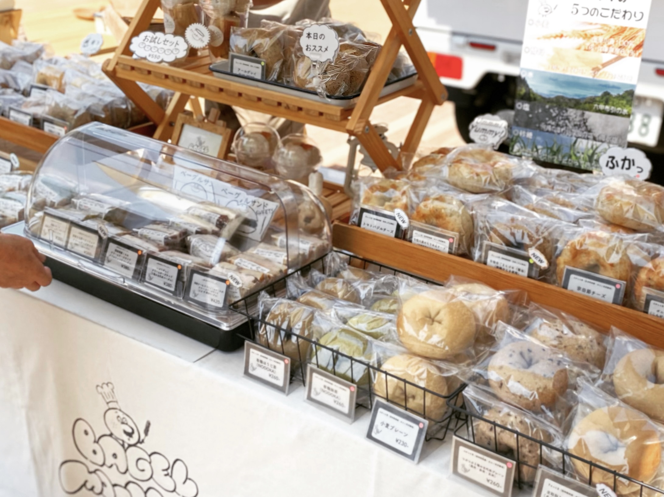 店舗を持たないベーグル専門店として、兵庫県産小麦を60%以上含む国産小麦100%と、六甲山系の水を使用し、素材にこだわったベーグルを手作りしております。イベント出店や、通販、道の駅神戸フルーツ・フラワーパークにてお取扱いいただいております。