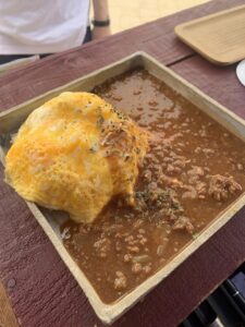 キーマカレーに新鮮卵を乗せた絶品のオムカレー
