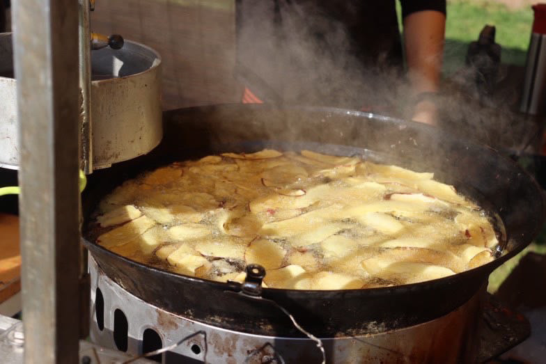 紅はるかや鳴門金時のサツマイモを揚げて、きび砂糖とヒマラヤ岩塩を振り、