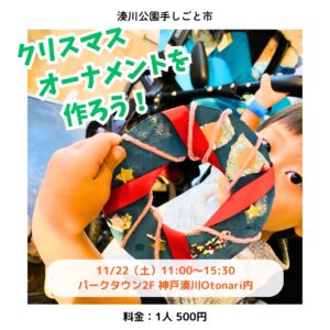 11月の湊川公園手しごと市 でのワークショップは「クリスマスオーナメントをつくろう!」