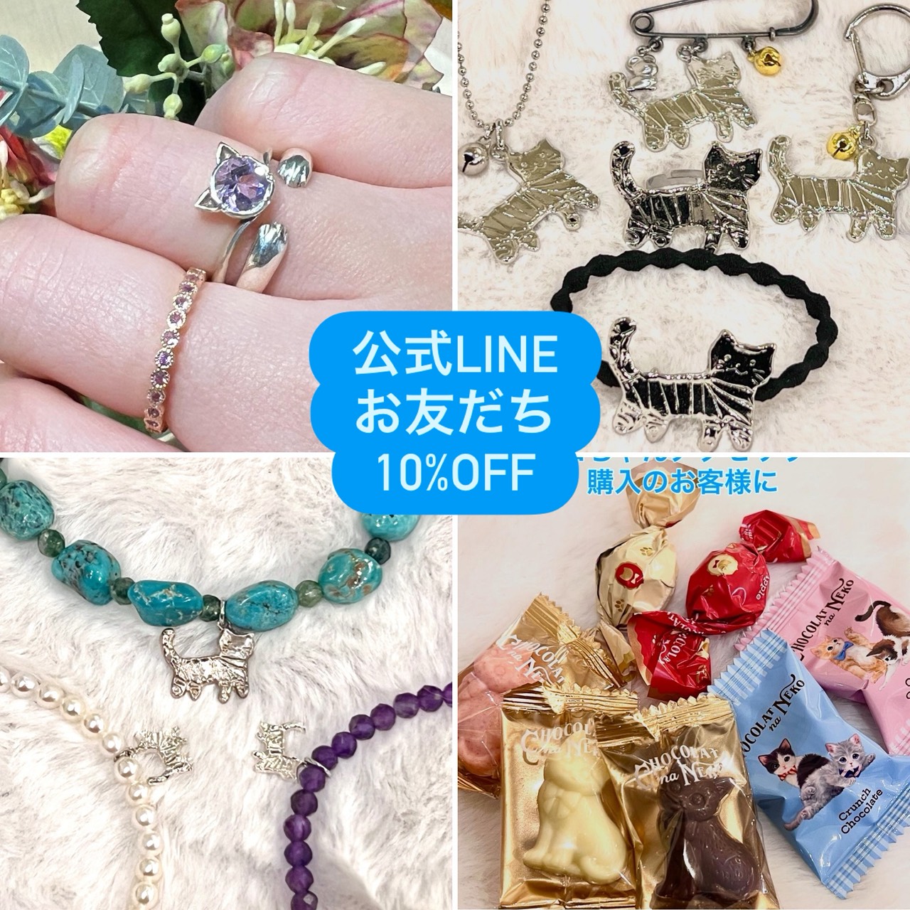 ネコちゃんアクセサリーお買い上げのお客様にかわいいネコちゃんチョコレート1つプレゼント🎁
