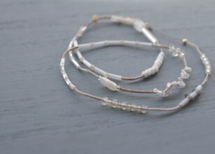 主に綿や絹の極細糸を使用し、アンティークのパーツや天然石、貝殻などを繋いでアクセサリーに仕...